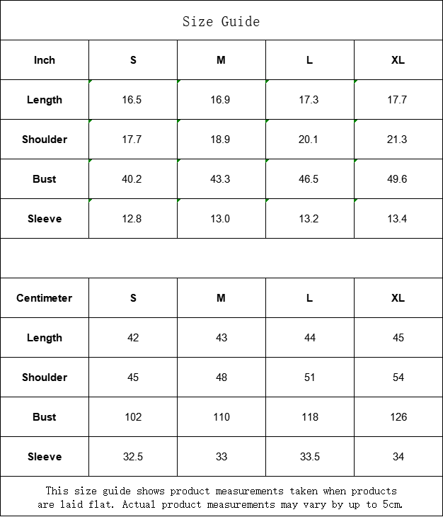 This size guide shows product measurements taken when products are laid flat. Actual product measurements may vary by up to 5cm.